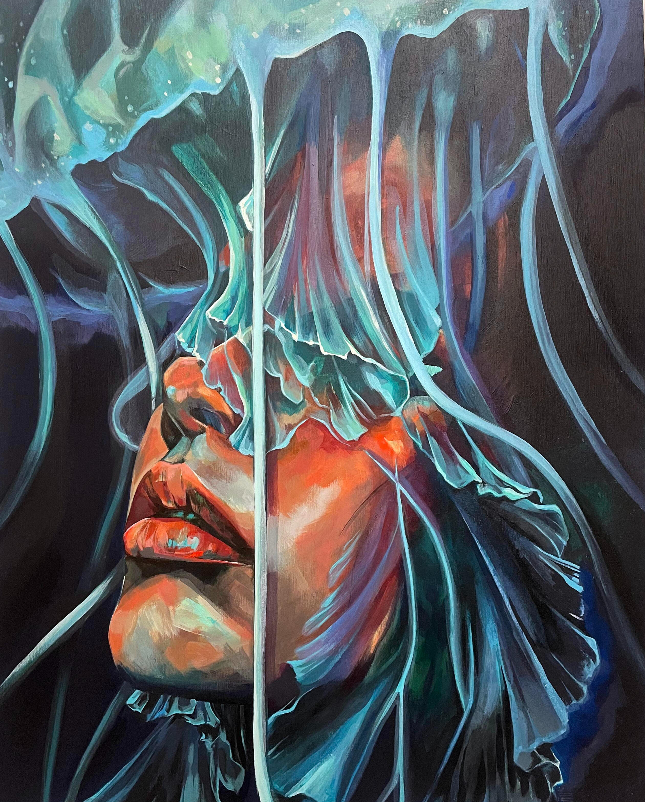 Chrissy Kuiack is a Toronto based artist and muralist. Working from canvas to city streets with merging styles of loose brush strokes and the soft aerosol layers to create her works of art. Her work is recently heavily inspired by flowing fabrics and fluid textures.These collection of paintings are some recent studio works.